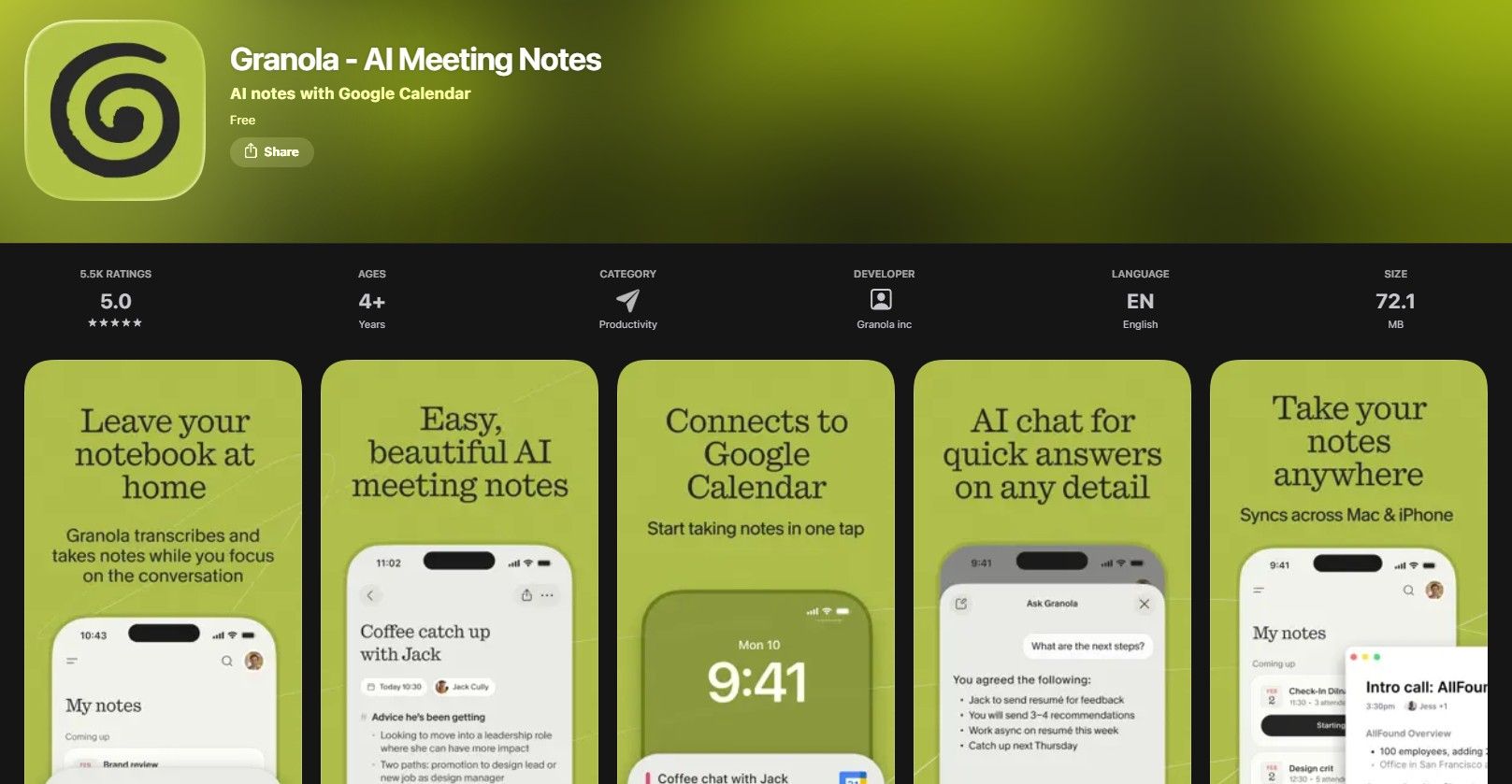 🚀 Profi-Tipp: Lege Ordner für berufliche und private Gespräche an. Granola lässt sich außerdem mit Notion, Zapier, Slack oder HubSpot verbinden.