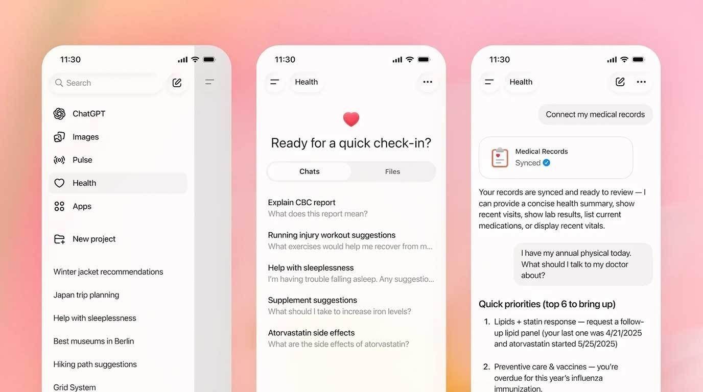 OpenAI hat ChatGPT Health vorgestellt, einen neuen, abgekapselten Gesundheitsbereich innerhalb des Chatbots. Nutzer können dort medizinische Unterlagen und Fitnessdaten einbinden, um Gespräche rund um die eigene Gesundheit auf Basis persönlicher Kontexte zu führen statt allgemeiner Ratschläge.