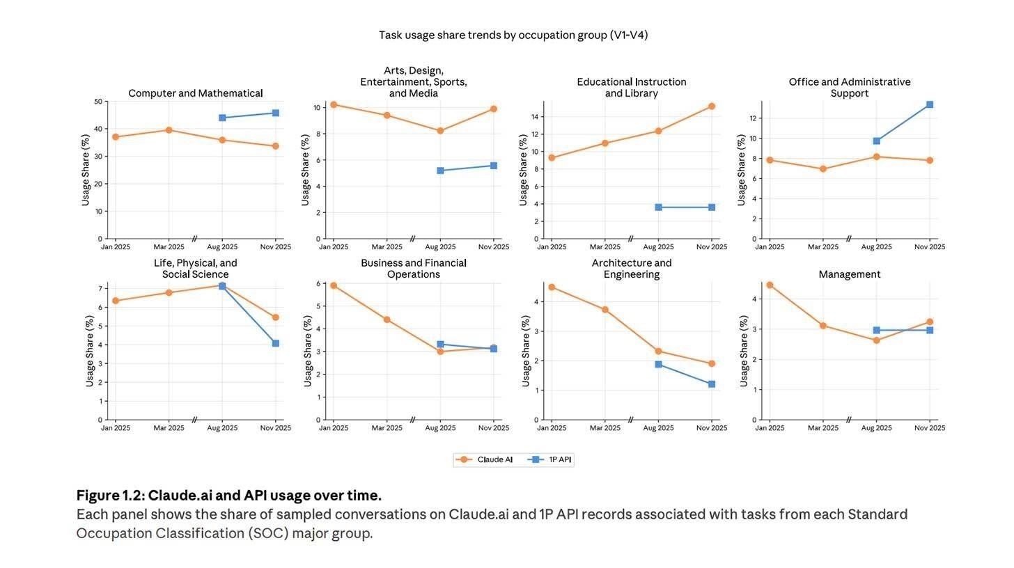 Programmieraufgaben dominieren weiterhin die Nutzung von Claude, wenngleich unterstützende Nutzung wie Lernen, Feedback und Iteration inzwischen reine Automatisierungsaufgaben überholt hat.