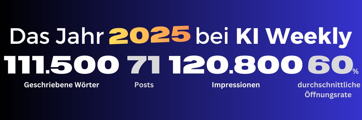 In eigener Sache: KI Weekly verabschiedet sich bis zum 11. Januar in die Weihnachtspause. Wir wünschen Dir ruhige Feiertage und einen schönen Jahreswechsel. Danke, dass Du KI Weekly in diesem Jahr begleitet hast. Wir freuen uns auf ein neues Jahr voller spannender Entwicklungen und noch mehr KI. 🎄🎆